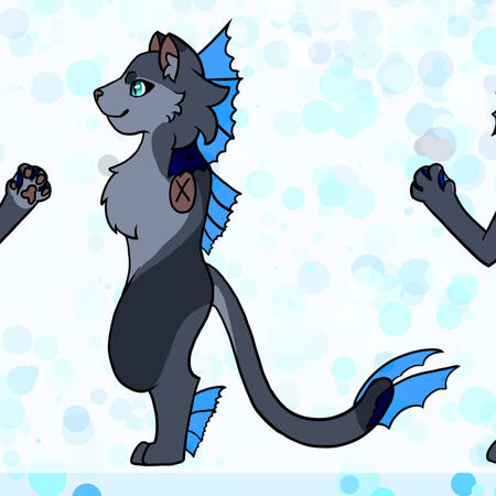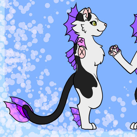 The Saltwater Catfish are a hybrid species composed of a domestic house cat and a fish.The Saltwater Catfish stand 4 to 5 feet tall in anthro form and the size of a large house cat in feral form. They have a set of fins either on their sides or on the neckThey can have any size and shaped ears and tails common to the feline species.